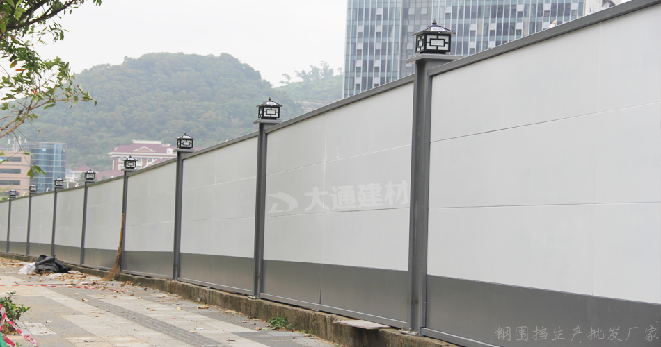 深圳市大通建材生產批發A類烤漆鋼圍擋、B類鋼圍擋、C類鋼圍擋、PVC圍擋、工地大門、圍擋基礎塊,并提供圍擋送貨安裝、圍擋廣告等服務。在東莞設有大型的專業的圍擋生產基地;擁有行業內比較先進的生產設備,自動化程度高,擁有一批經驗豐富的設計、生產、質檢、安裝團隊;擁有強大的生產制造能力,保證隨時有現貨,能夠實現客戶下單后馬上發貨安裝,客戶還可根據實際需求進行定制化生產。