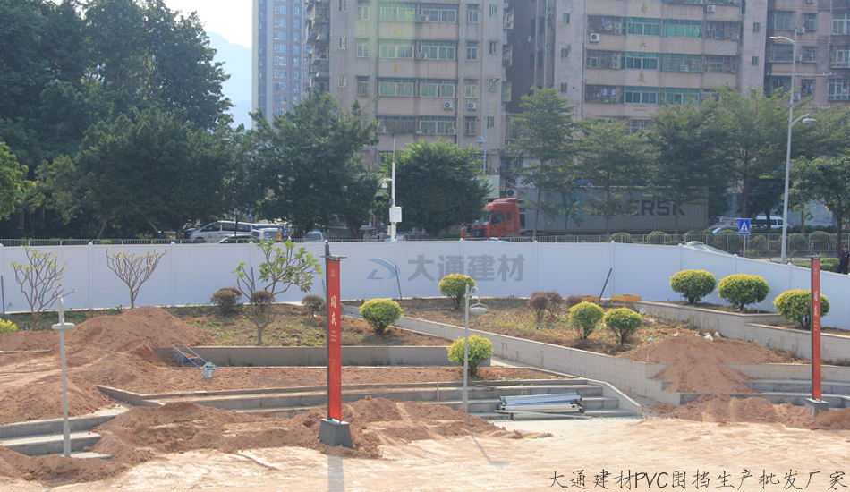 深圳市大通建材有限公司生產的PVC圍擋符合重慶市政要求標準,具有 美觀環保、機動靈活、快速拆裝、簡單快捷、安全牢固等特點,已應用于重慶江北區建筑工地施工,PVC圍擋起到隔離防護作用。