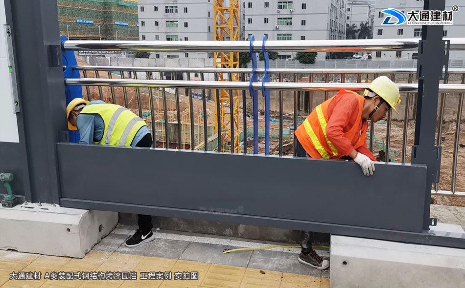 大通建材A類裝配式鋼結構烤漆工地施工圍擋半龍骨款安裝如上圖與下圖展示
